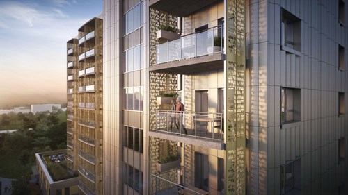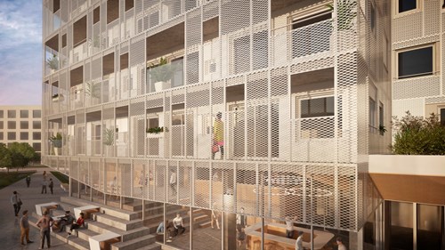 Description : En soumission - livraison en 2024. Projet pour loger des aînés à faible revenu et un CPE au r-c à Ste-Foy. Le défi relevé est l’économie de matériel. Le concept de panneau bombé a été développé pour utiliser un minimum d’aluminium (0,08 mm d’épaisseur) et obtenir un maximum de rigidité. C’est plus de 50 % d’économie par rapport à d’autres projets recouverts en 2,0 ou en 3,2 mm.