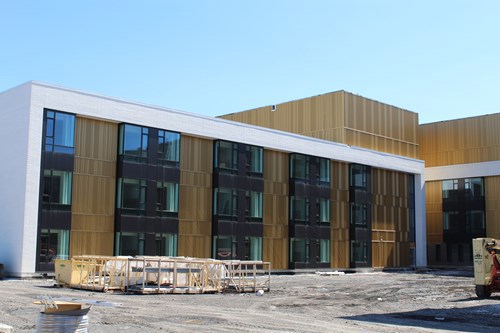 Description : Pour ce projet au design très particulier, résultant d’un concours d’architecture remporté par des architectes du Québec, Industries Panfab a collaboré à la fourniture de panneau de recouvrement de type « bardage » en inspiration des tuiles des anciennes toitures « à la canadienne », pour ces deux tours de formes cônes cylindriques tronqués; avec du matériel d’aluminium fini naturel avec texture embossé.