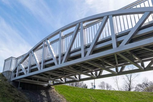 Plusieurs passerelles sont presque entièrement fabriquées en aluminium. En plus de la structure portante principale, les garde-corps, le platelage et la barrière dissuasive peuvent aussi être faits de composants en aluminium.