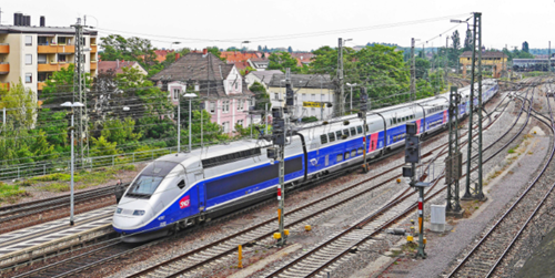 Zefiro : cette famille de trains de Bombardier peut aller de 250 km/h à 380 km/h. Ces trains peuvent avoir quatre différentes tensions d’alimentation (courant continu de 1,5 et de 3 kV, courant alternatif de 15 et de 25 kV). De plus, la longueur du train est variable et peut atteindre 428 m (16 voitures). D’ailleurs, en 2010, l’exploitant ferroviaire italien Trenitalia a commandé 50 rames V300ZEFIRO, soit 400 voitures. [6]