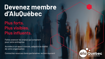 Être membre d’AluQuébec, ce n’est pas seulement adhérer à un réseau : c’est vous donner plus d’accès, plus d’influence et plus d’occasions d’affaires.