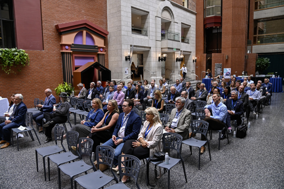 Pour enchaîner sur les propos fort enrichissants des deux conférenciers, Manon Goudreault et Francis Gosselin, le président du conseil d’administration d’AluQuébec, Yves Tremblay, a réitéré l’intérêt d’AluQuébec à collaborer à la Zone d’innovation sur l’aluminium (ZiAl) pour assurer une intégration harmonieuse de cette nouvelle structure. Il a poursuivi ses propos en faisant mention de quelques réalisations de l’année 2023 pour la Grappe, dont une des plus marquantes, soit le lancement de son membership payant. « Après une décennie d’initiatives et de projets porteurs, le moment était opportun pour AluQuébec de se doter d’un système qui renforce son rôle mobilisateur auprès des intervenants de l’industrie de l’aluminium du Québec ». Effectivement, en mettant en place sont membership, AluQuébec a souhaité concrétiser sa force fédératrice pour non seulement consolider l’importance stratégique de l’écosystème de l’aluminium, mais aussi pour rassembler les parties prenantes autour de projets innovants et d’objectifs structurants.